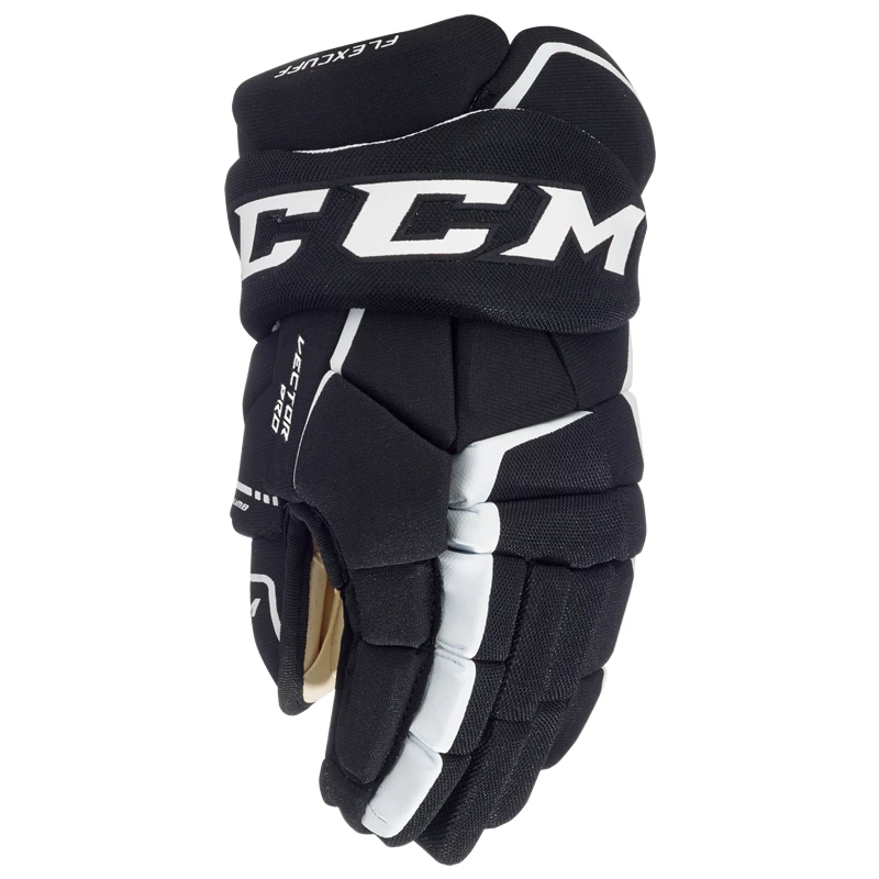 The CCM Tacks Vector Pro Gloves feature an anatomical fit that is snug around the hand and opens up towards the wrist and cuff.